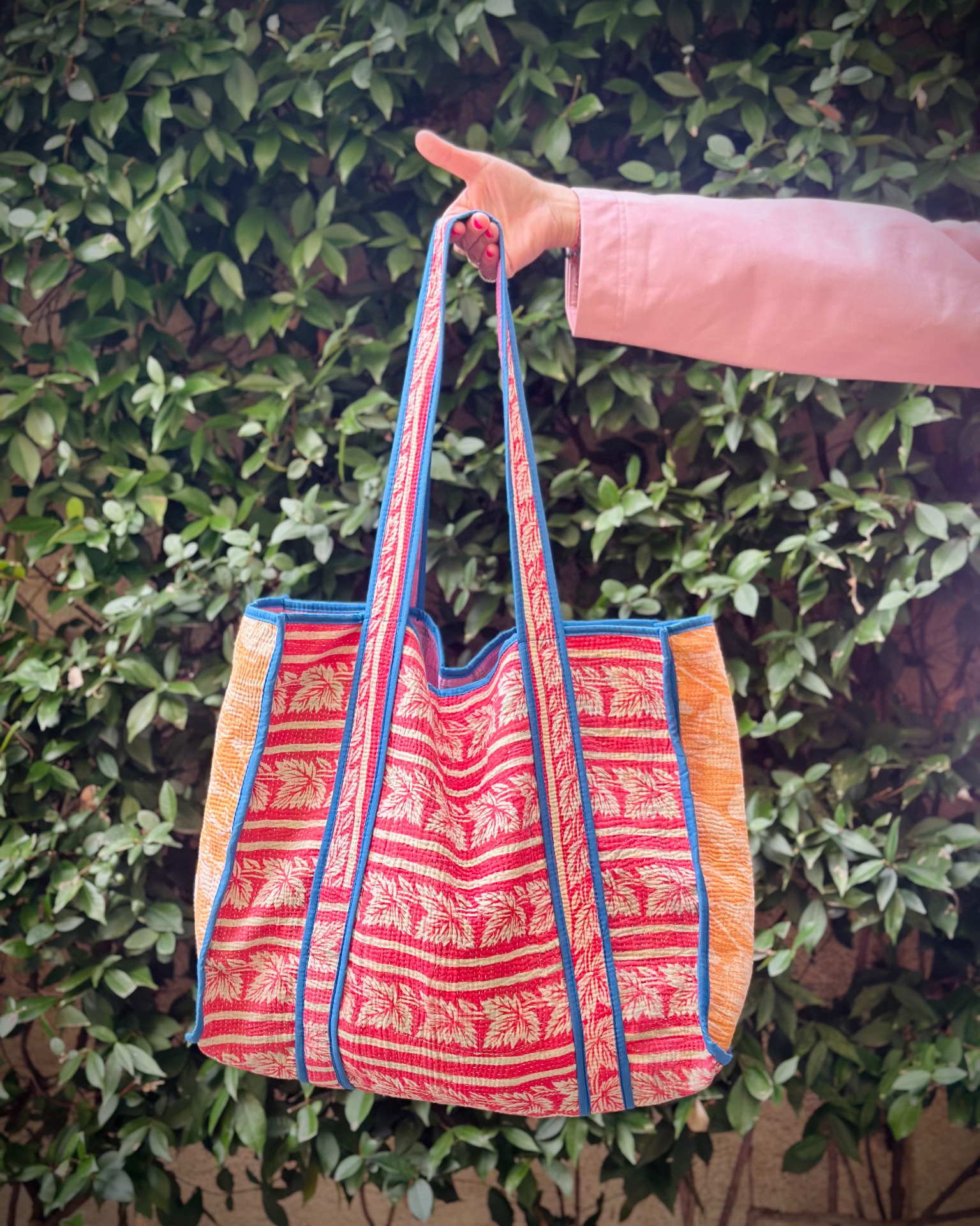 Borsa Kantha pesca/rosso/glicine