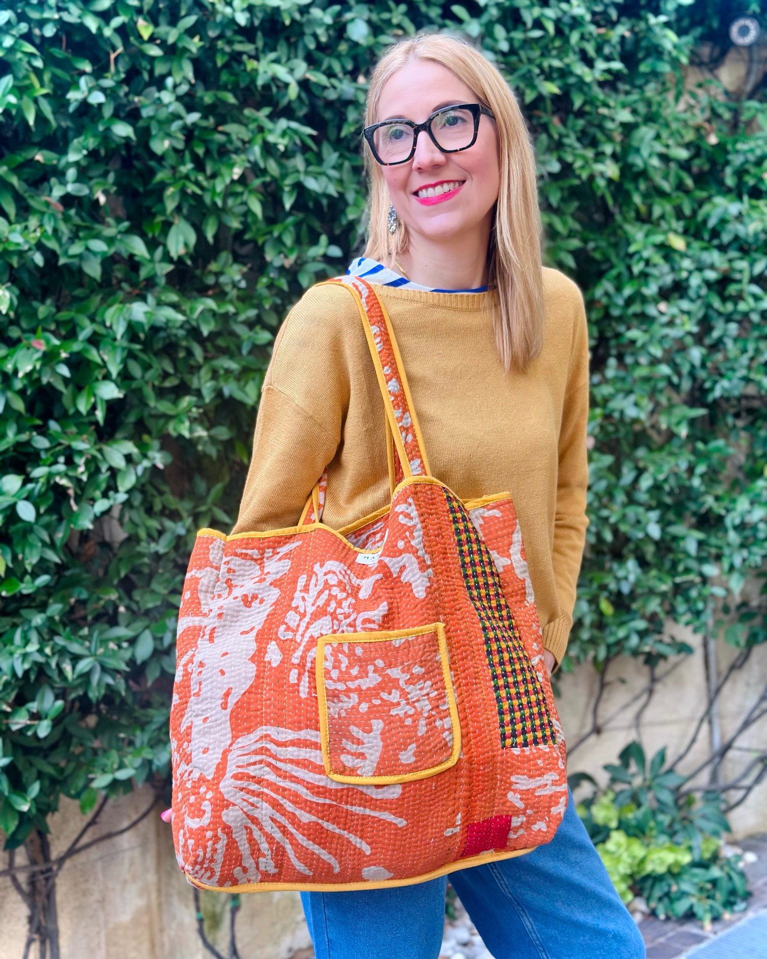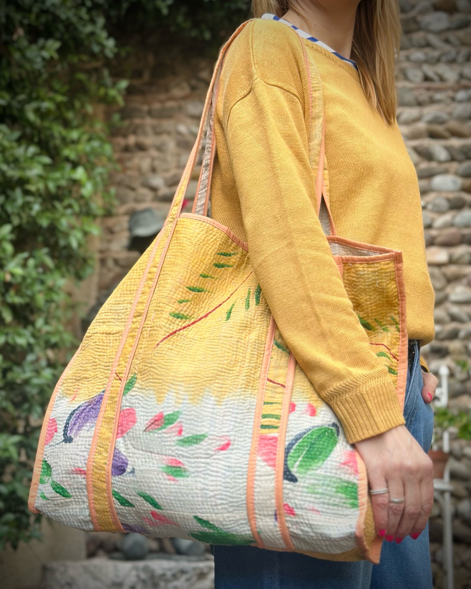 Borsa Kantha gialla