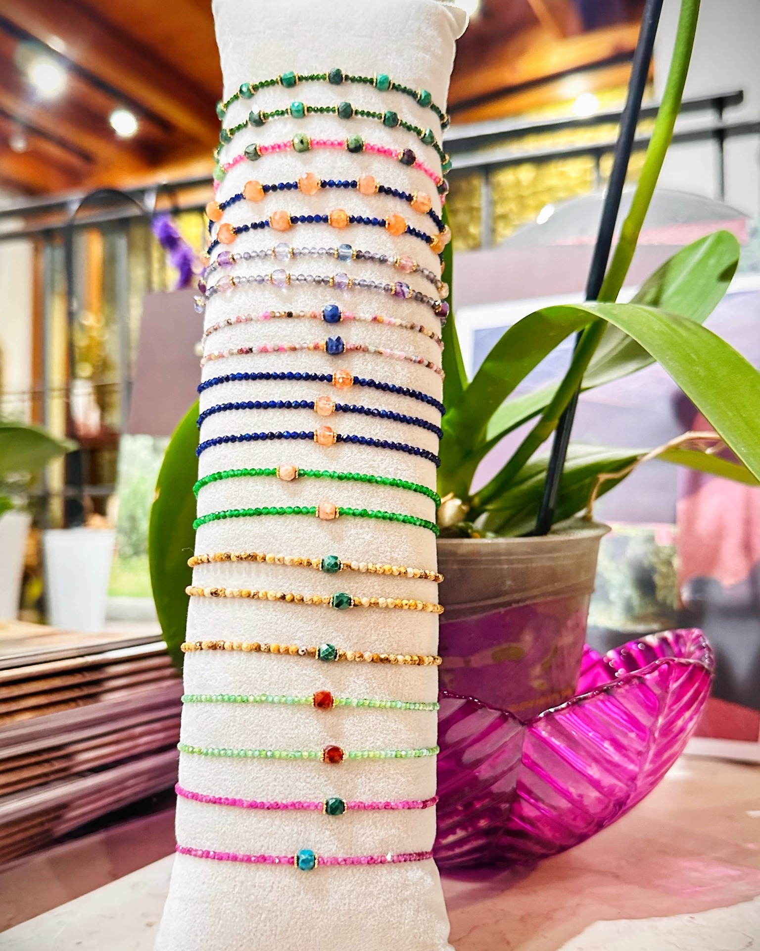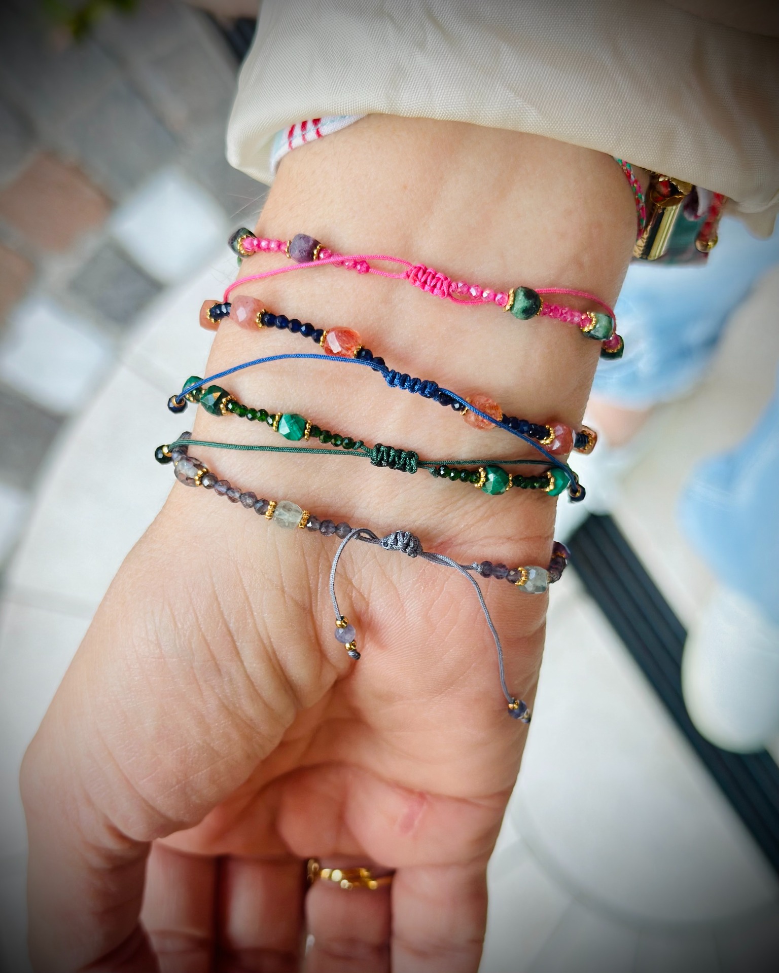 Bracciali con pietre naturali, misura regolabile tramite cordino.