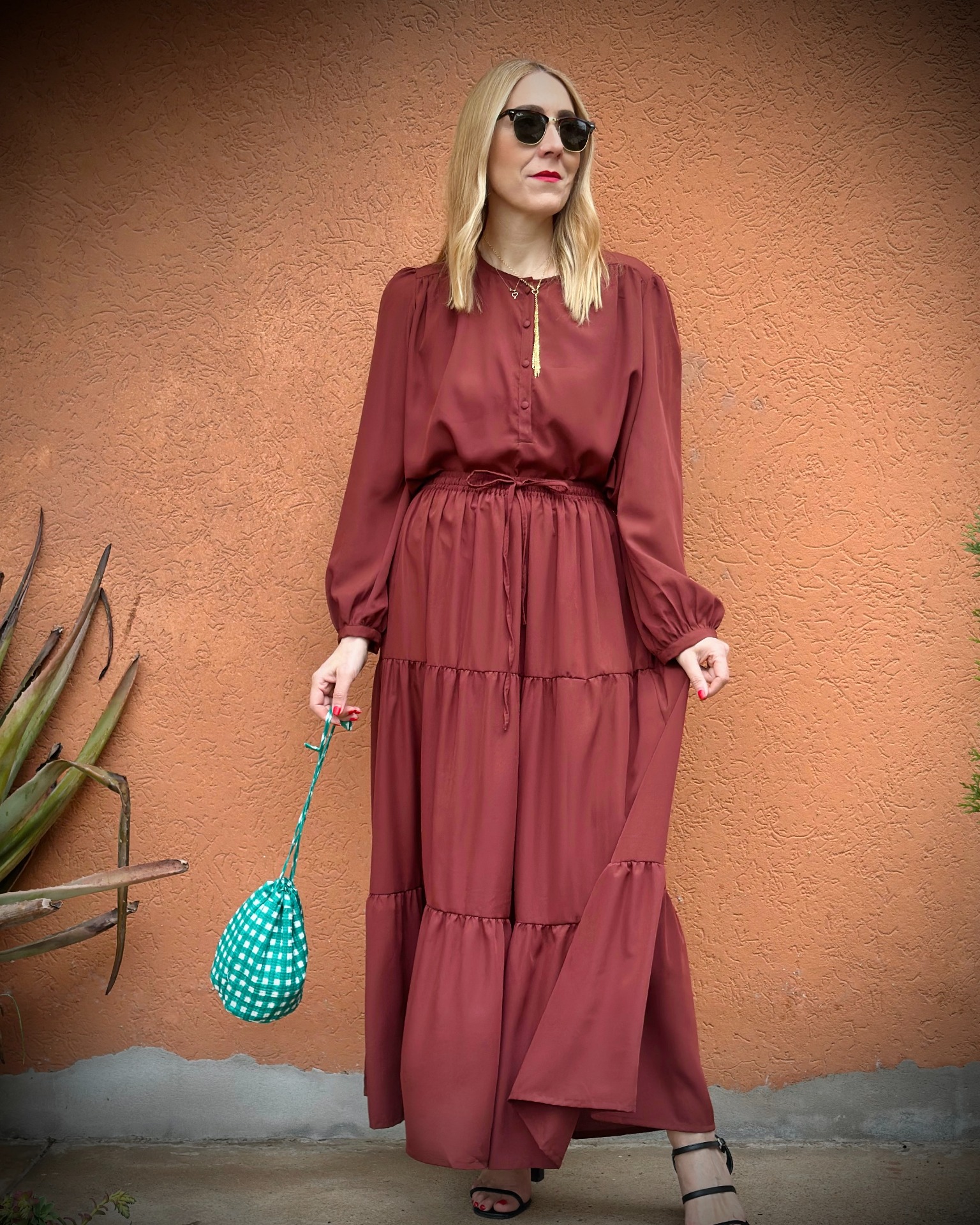 Camicia colore cacao con bottoncini rivestiti.