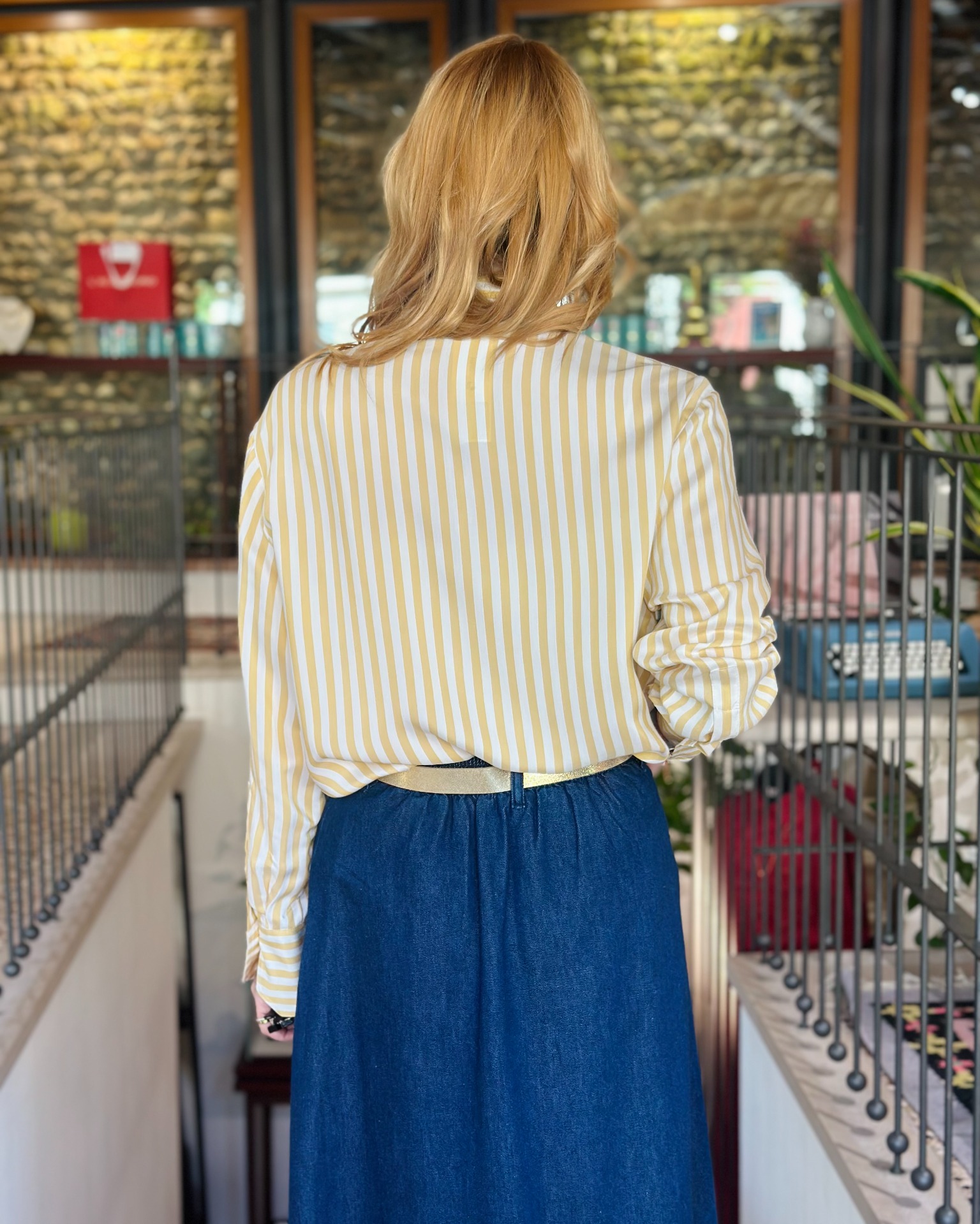 La camicia in tessuto fluido che scivola sulla silhouette, un modello d'ispirazione maschile che rivela tutta la propria femminilità