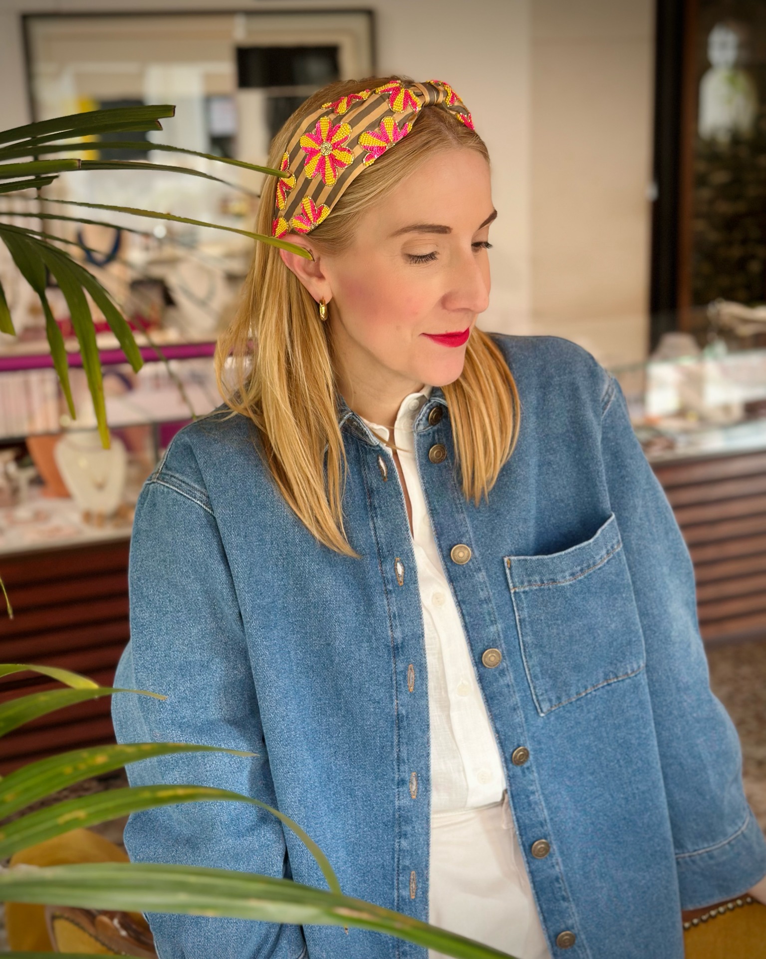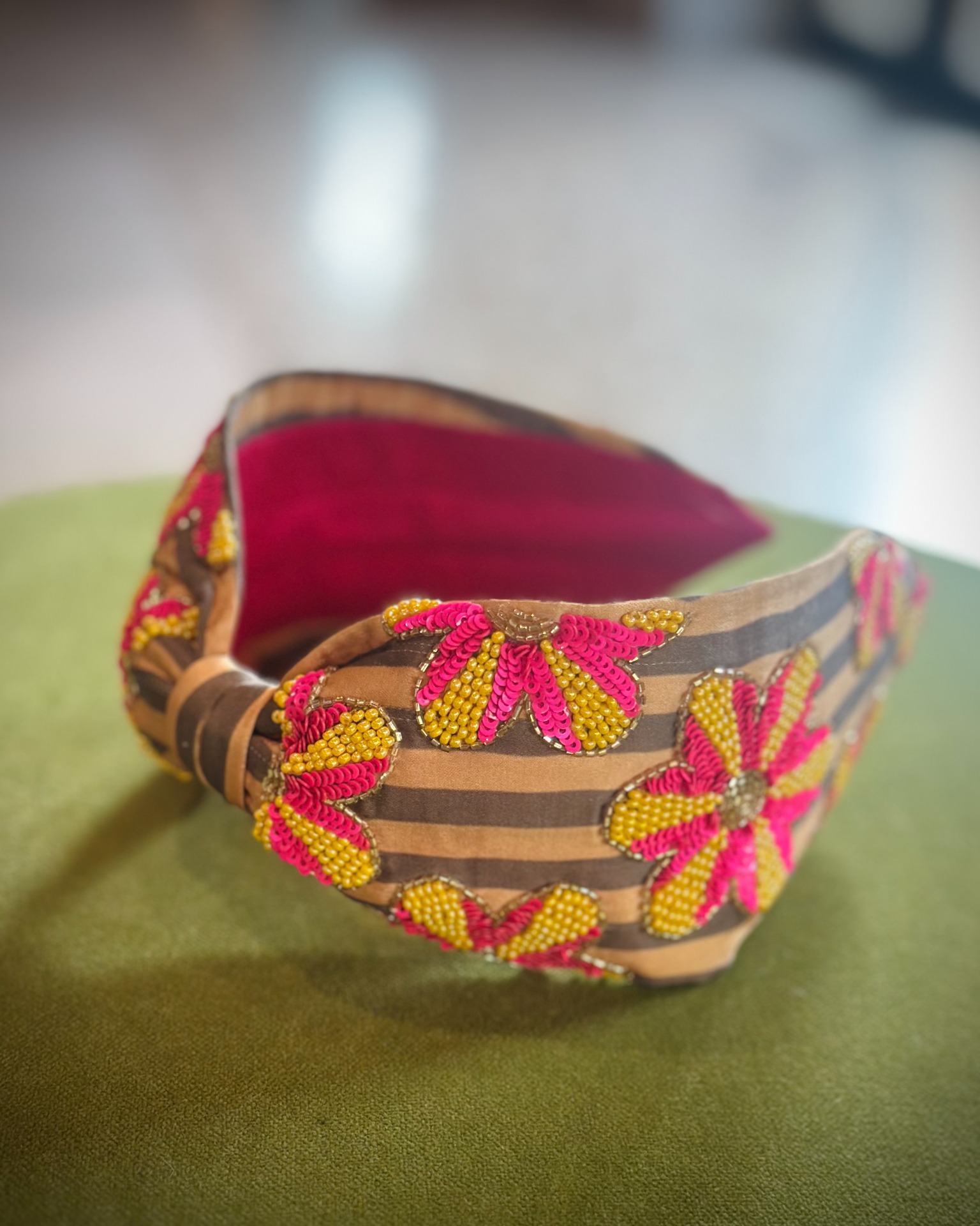 Cerchietto in tessuto con ricami multicolor, luminoso e originale. Comodo e strutturato, completa ogni look con carattere.