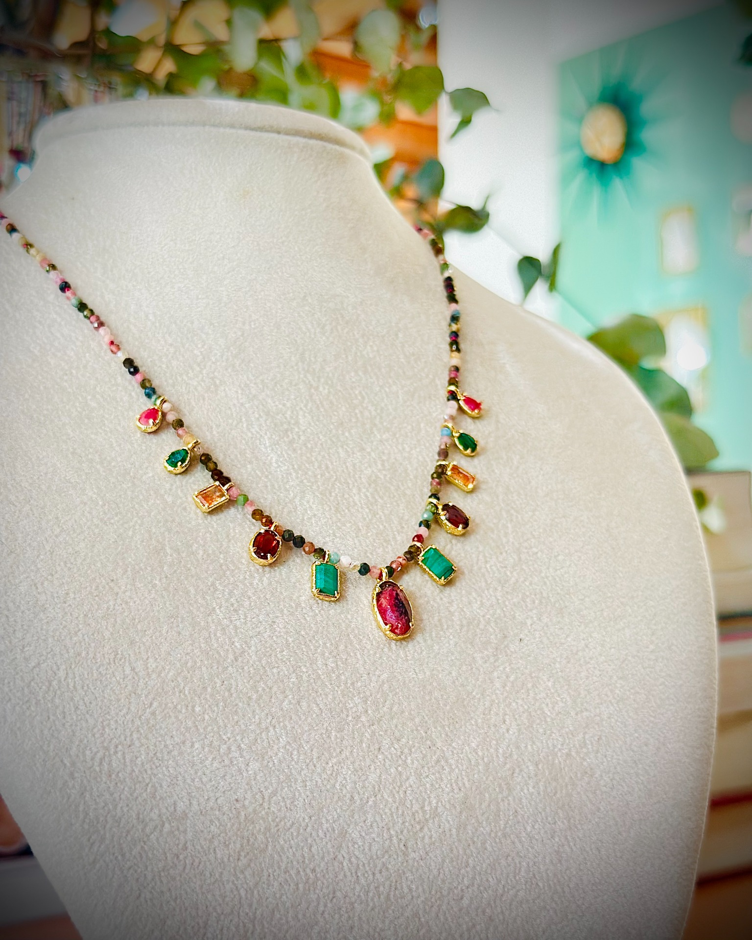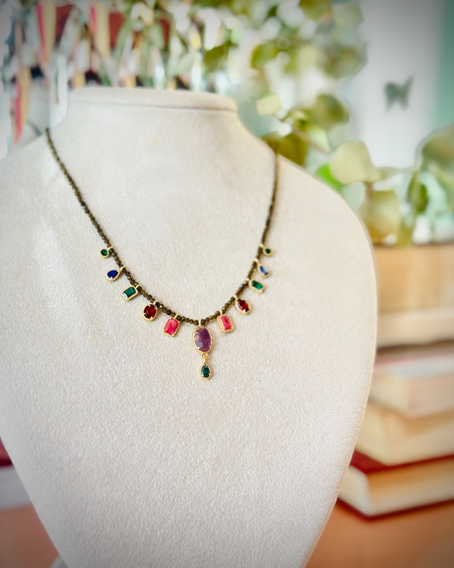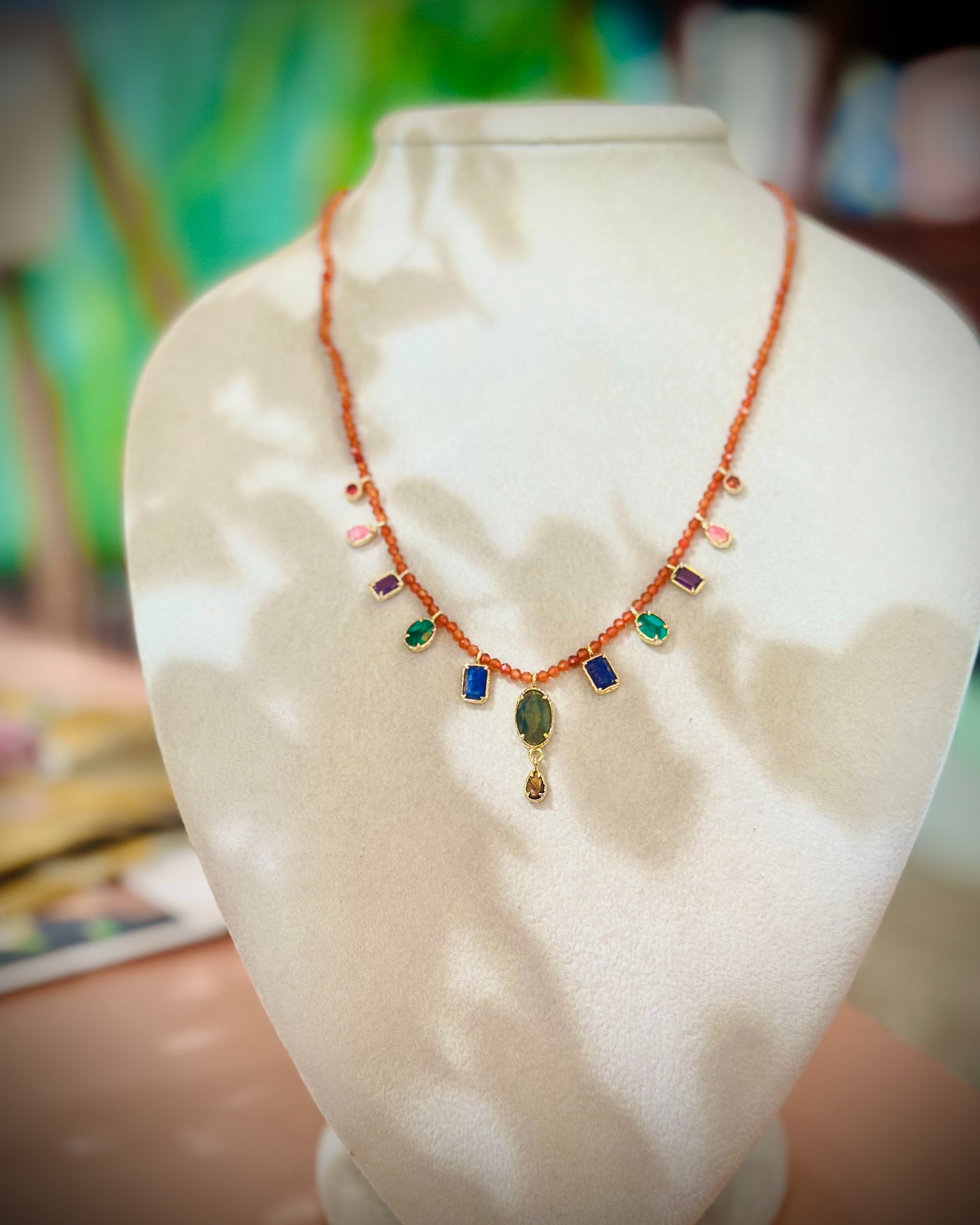 Collana girocollo con pietre naturali e perline.