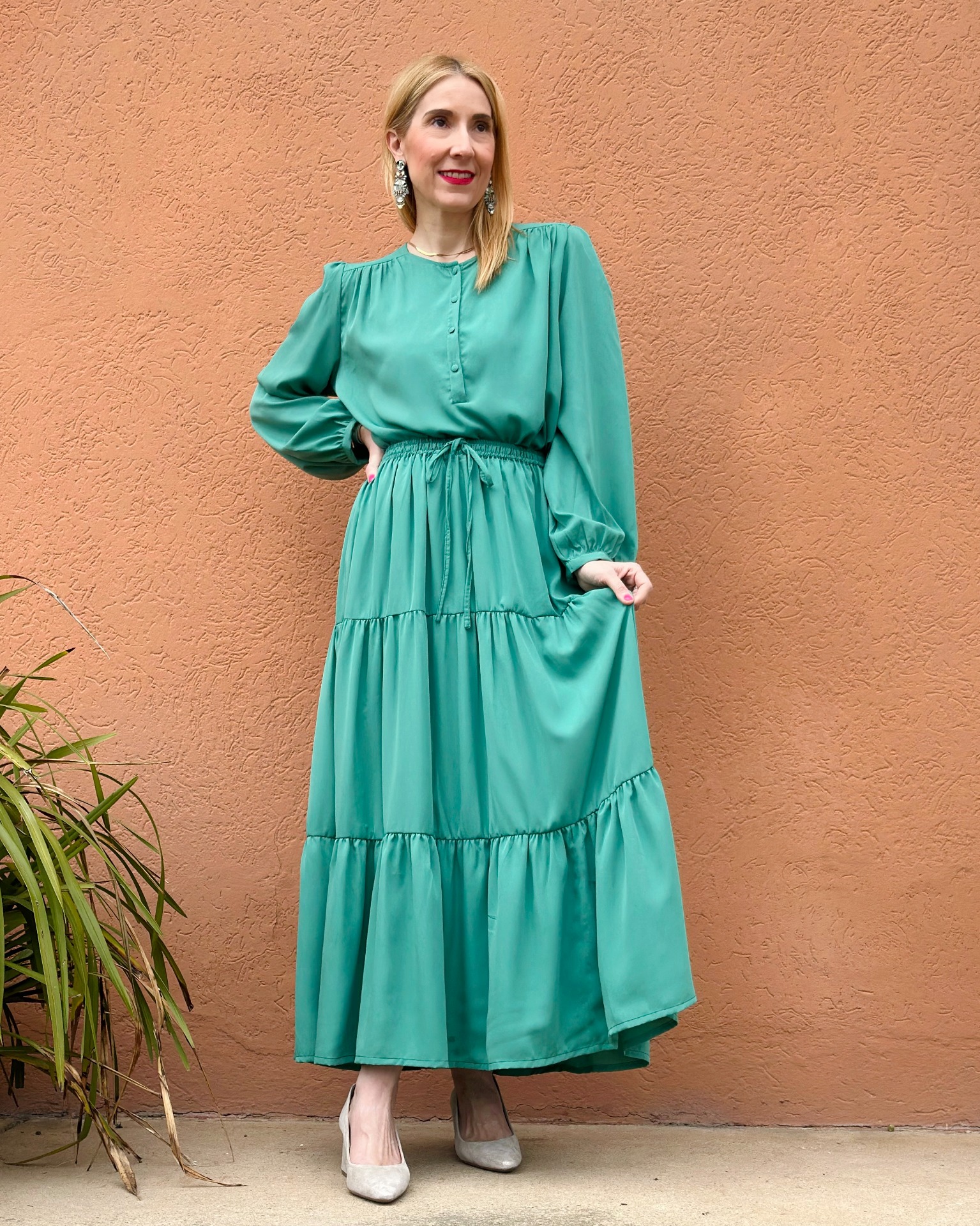 Gonna lunga in color menta, con elastico in vita per una vestibilità comoda e naturale.
