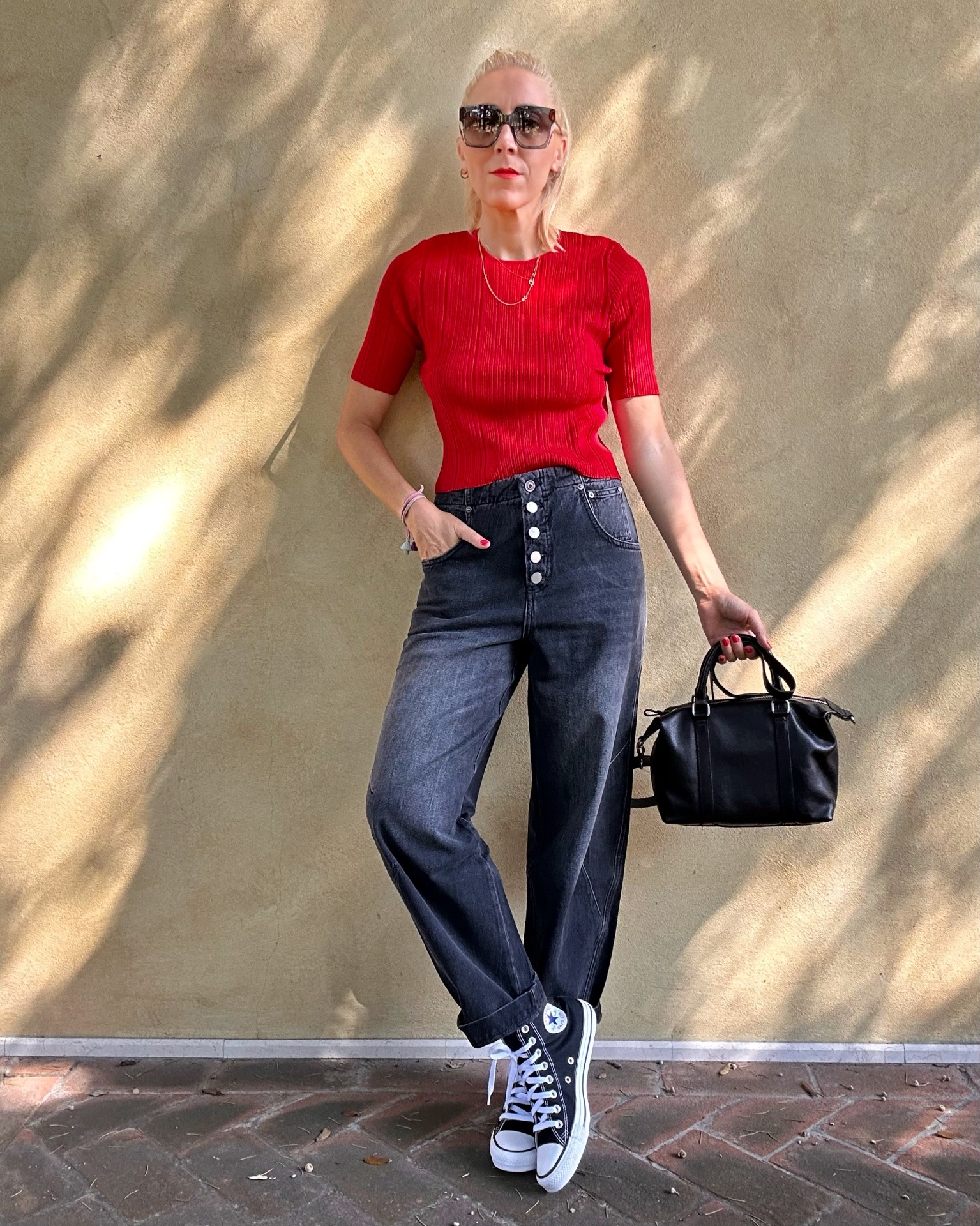 Jeans nero effetto sfumato, materiale 100% cotone.