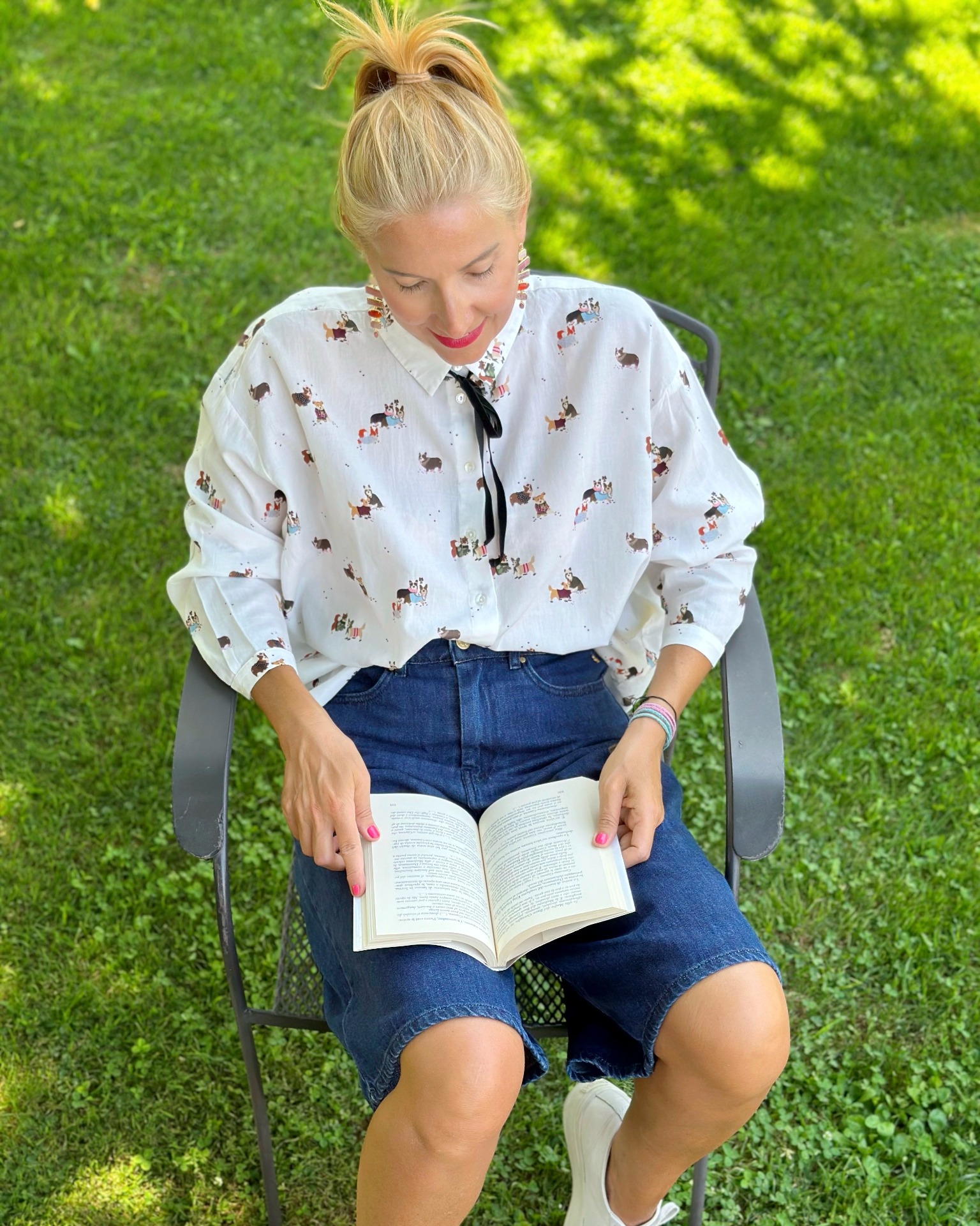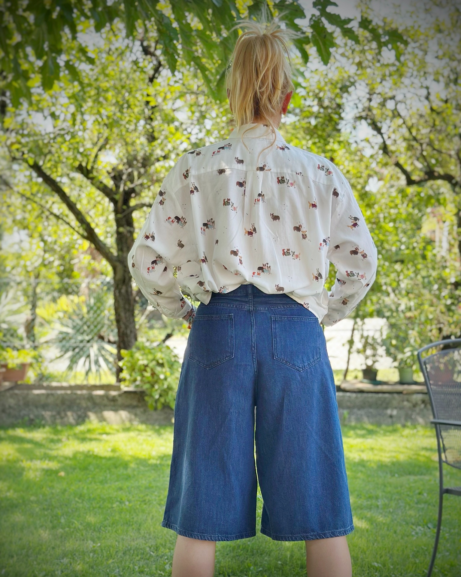 Jeans al ginocchio in denim, zip davanti. 100% cotone.