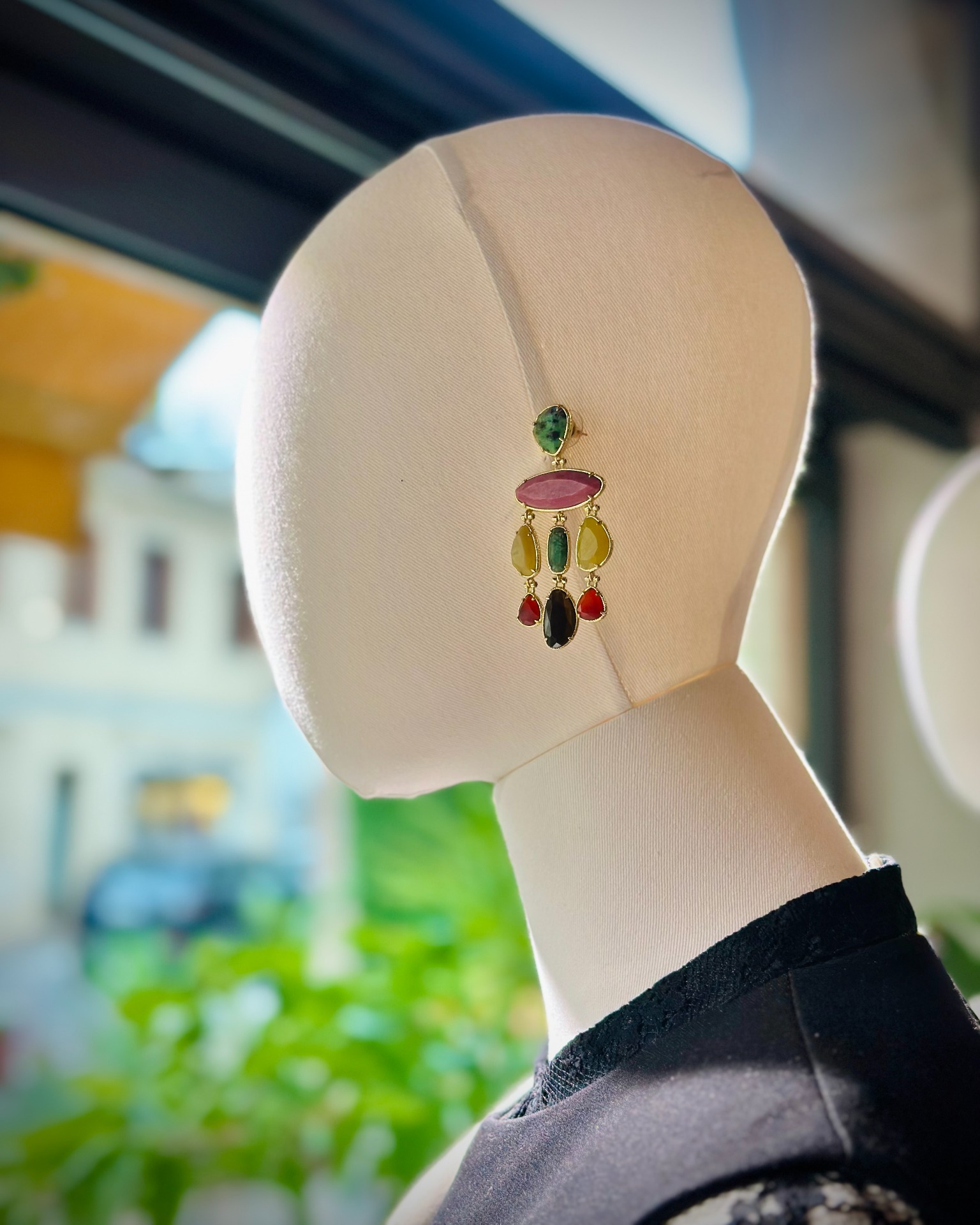 Orecchini chandelier multicolor, lunghezza 7,5 cm.
