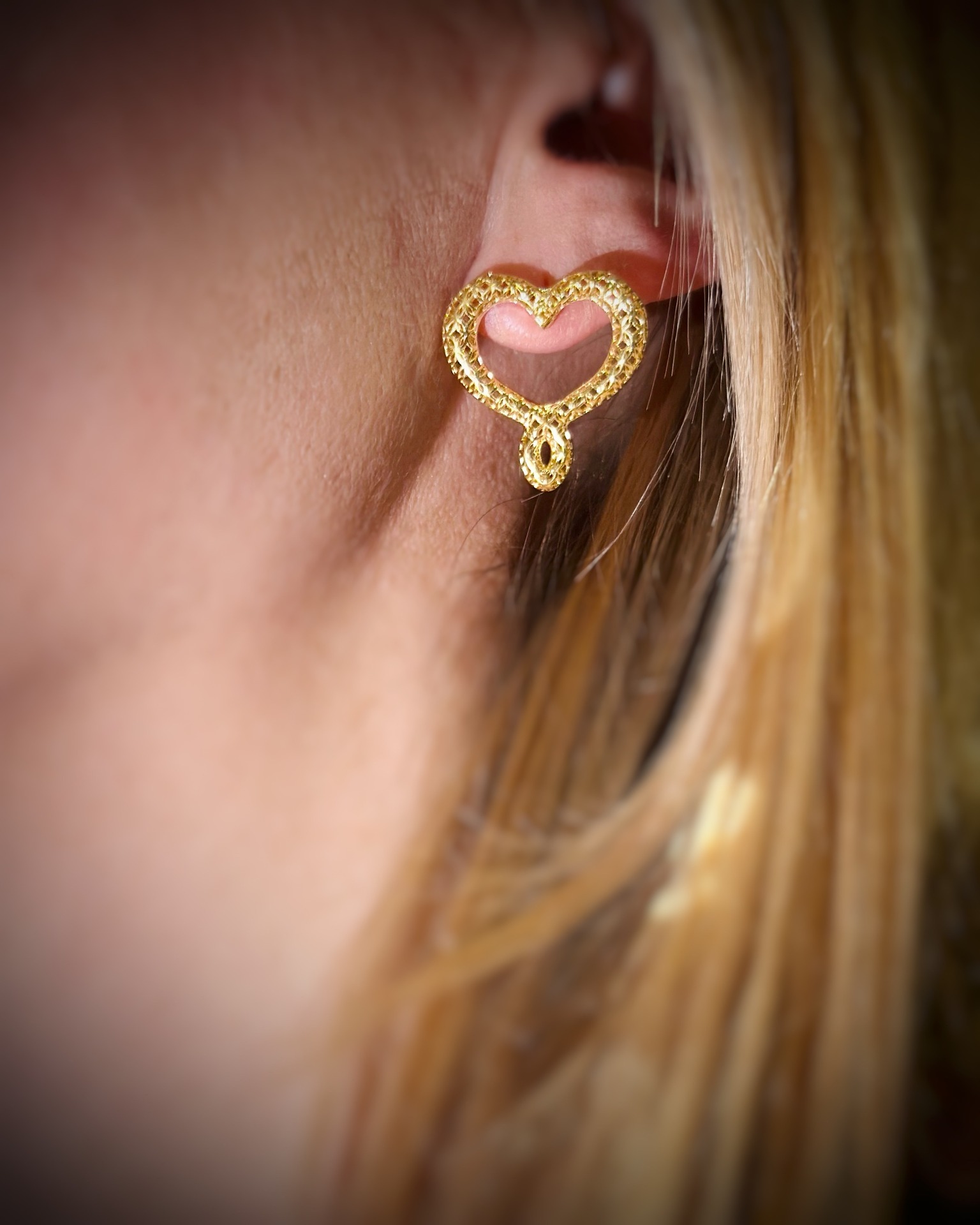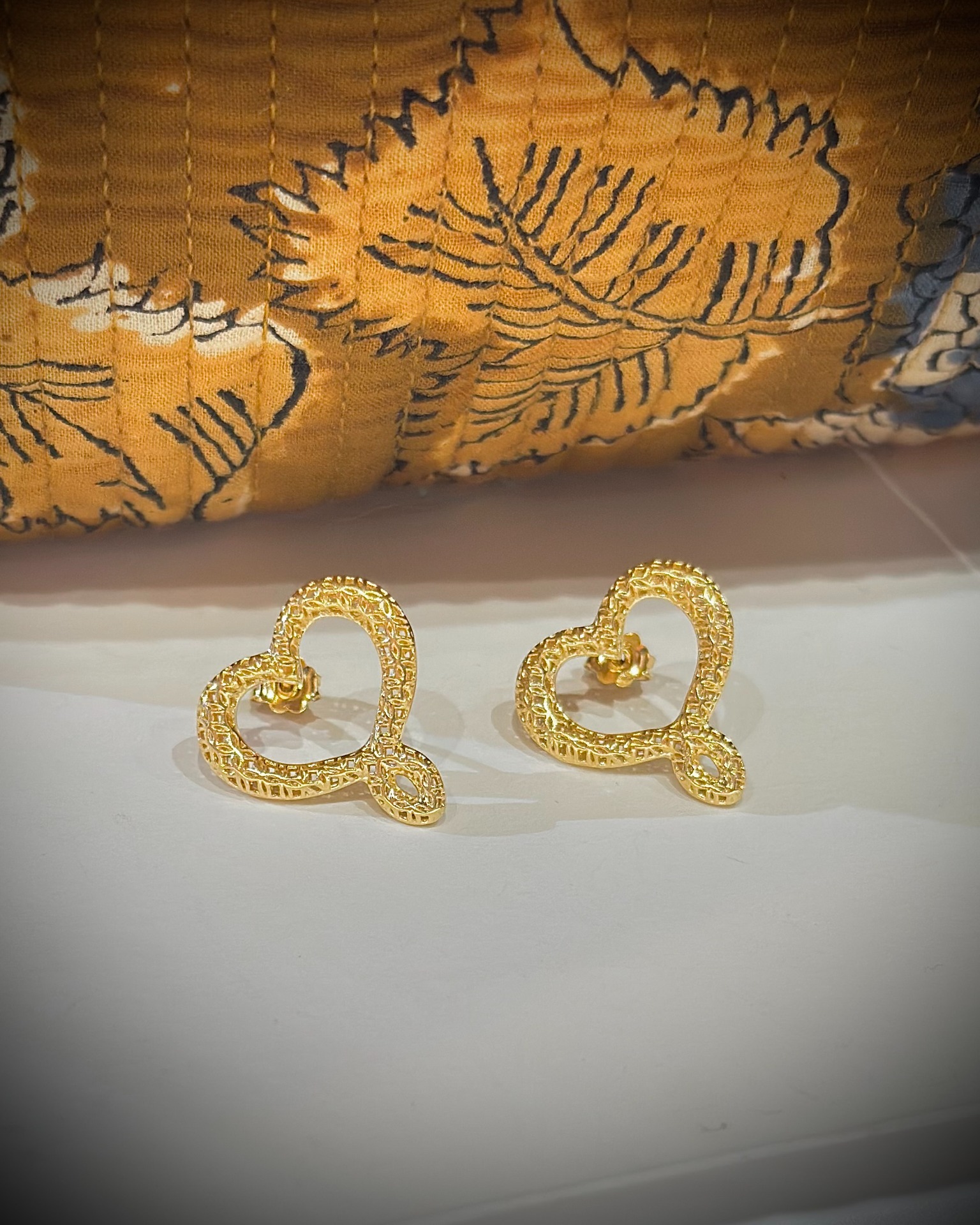 Coppia di orecchini a lobo cuore Maman et Sophie con trama, realizzati in argento 925 con galvanica oro.