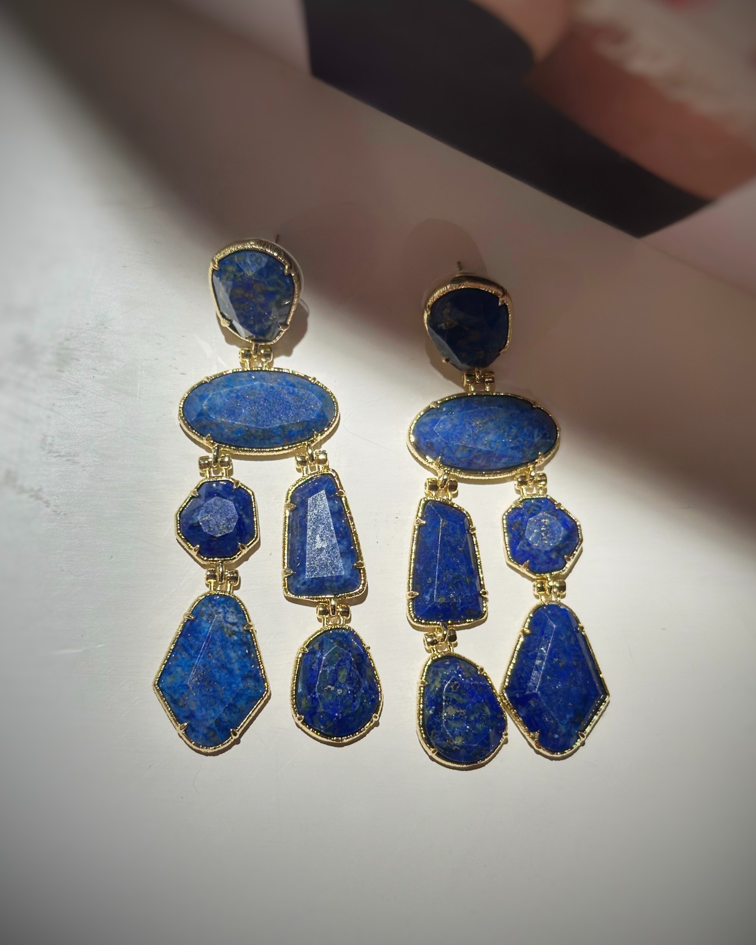 Orecchini pendenti con pietre naturali blu. Misure : 8 x 2 cm.