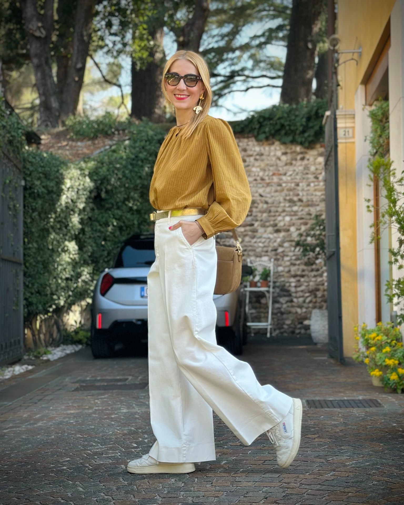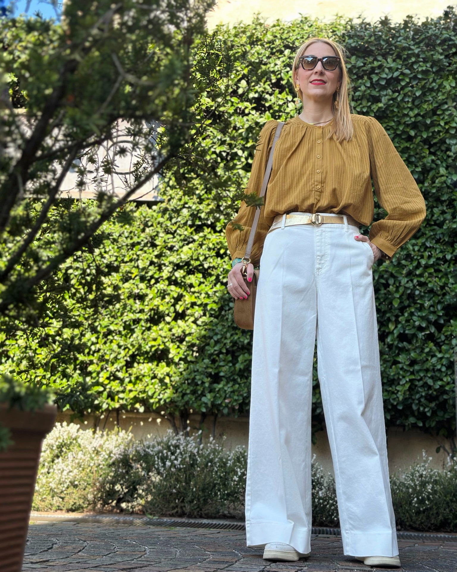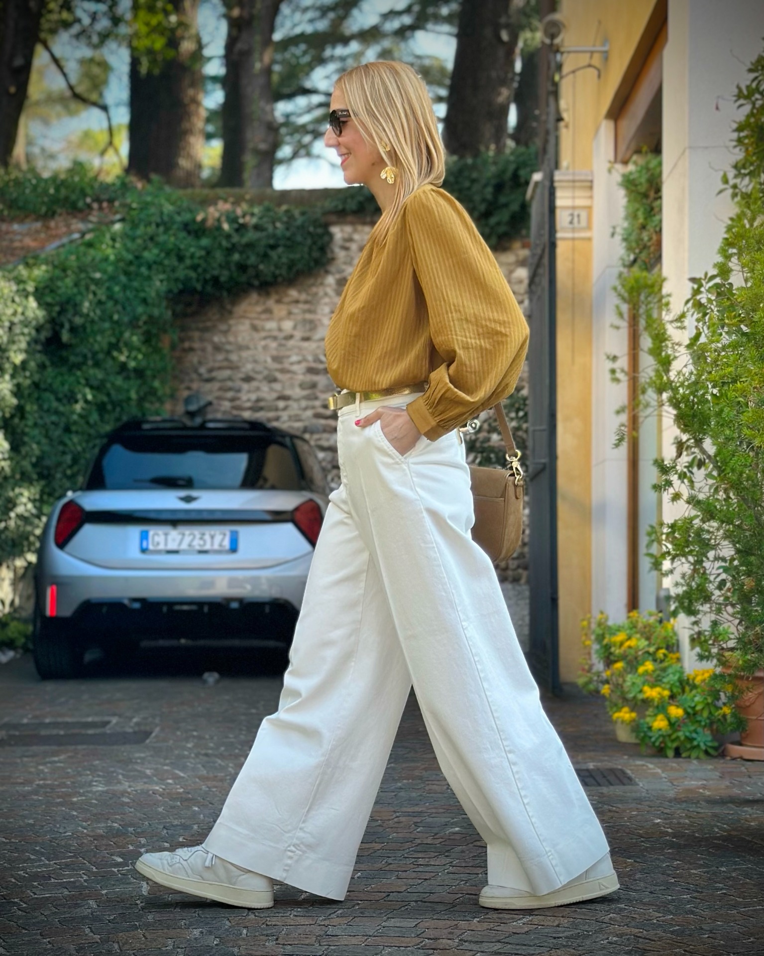 Essenziale e luminoso, il pantalone pensato per muoversi con naturalezza tutta la giornata. Linea ampia e fluida.