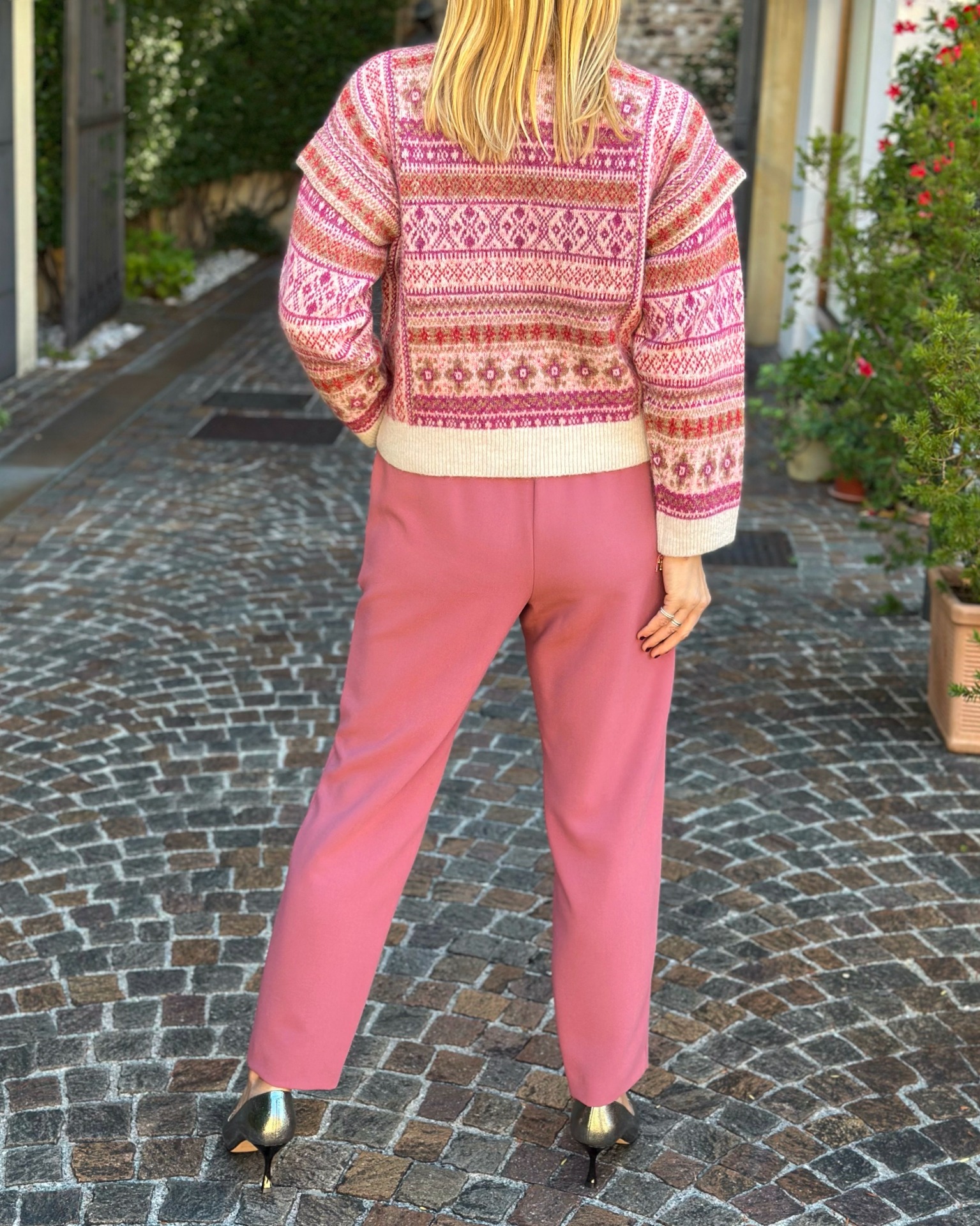 Pantalone alla caviglia con elastico in vita.