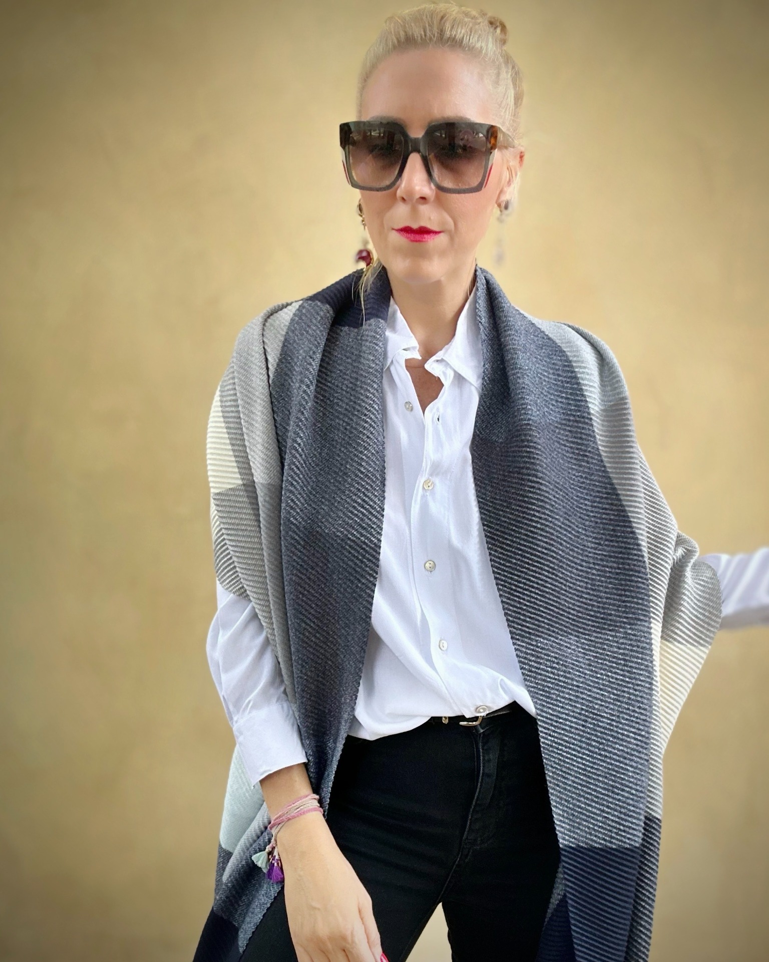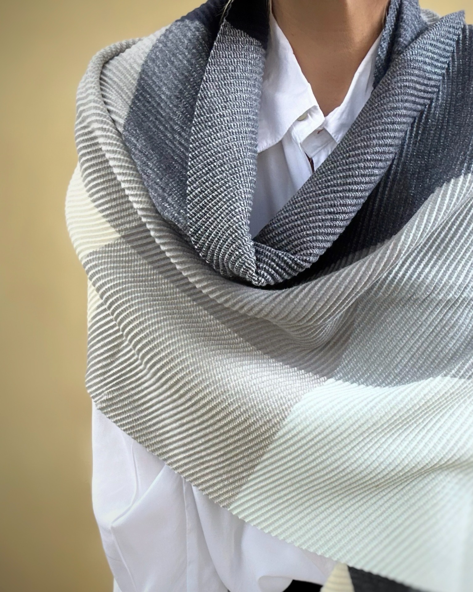 Sciarpa effetto plissè. Materiale 76% poly, 24% viscosa.
