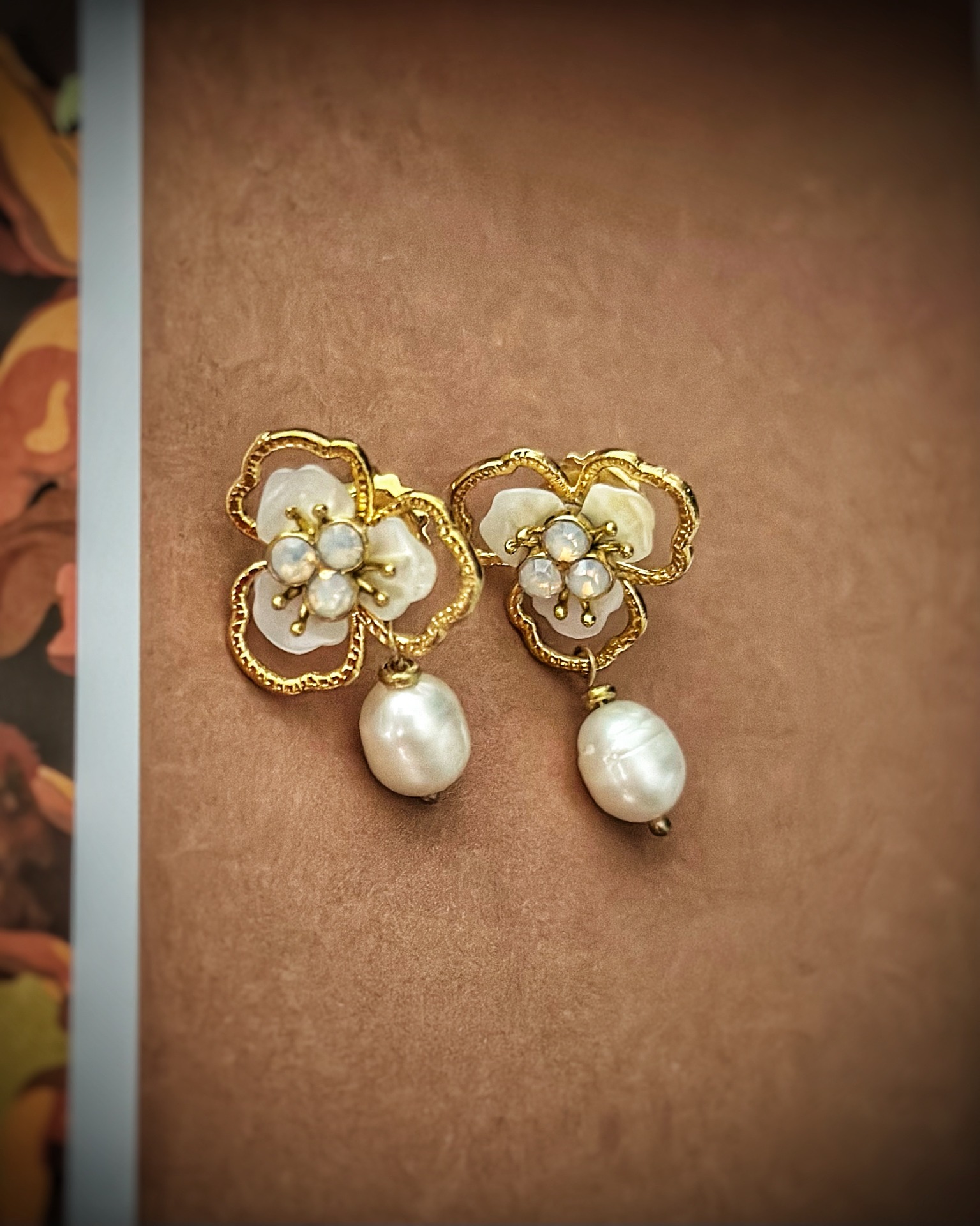 Orecchini fiore con perla pendente