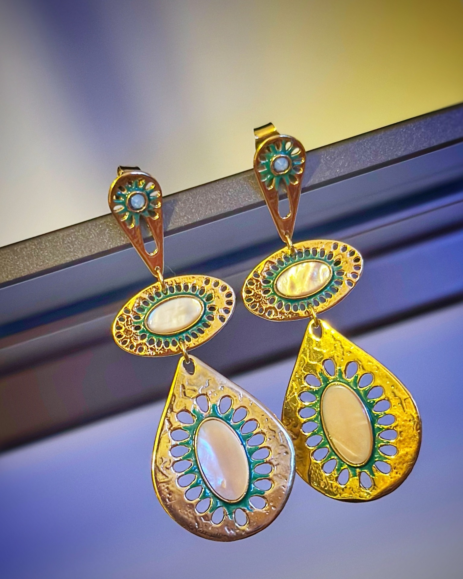 Orecchini 3 elementi con madreperla